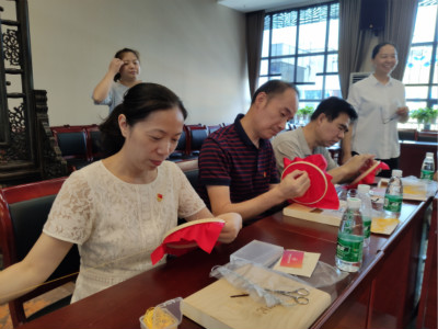 全體共繡黨旗環節在在大會議室舉行。先是奏唱莊嚴肅穆的國歌,接著黨員們一起重溫入黨誓詞,一句句錚錚誓言既是大家對黨和人民的承諾,也是對共產主義信仰的執著追求。一針一線尋初心,共繡黨旗念黨恩,全體黨員一同憶初心、繡黨旗,在各自領的小黨旗上用黃線繡出了的黨徽。大家在剛拿到的時候,都不知道該如何動手,如何下針,在指導老師現場的悉心指導下,大家相互幫助,互相學習,很快找到了門道。包括男同志都積極的參與,黨員們穿針引線繡得格外認真,把對黨的滿腔熱愛凝結在這細密的針線里,金黃的鐮刀斧頭襯得黨旗明朗鮮艷。一邊繡,一邊想那過去的崢嶸歲月,先烈們的英雄事跡,深感我們現在幸福生活的來之不易,把對黨和祖國的深情愛意繡在這一針一線里。